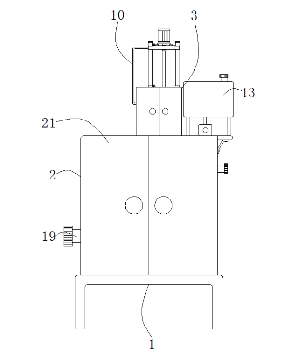 6.根据权利要求1所述的脱硫剂加料装置,其特征在于:所述箱体(2)的一侧连通有出气管(20),所述箱体(2)与所述防护箱(3)的正面均开设有箱门(21)。