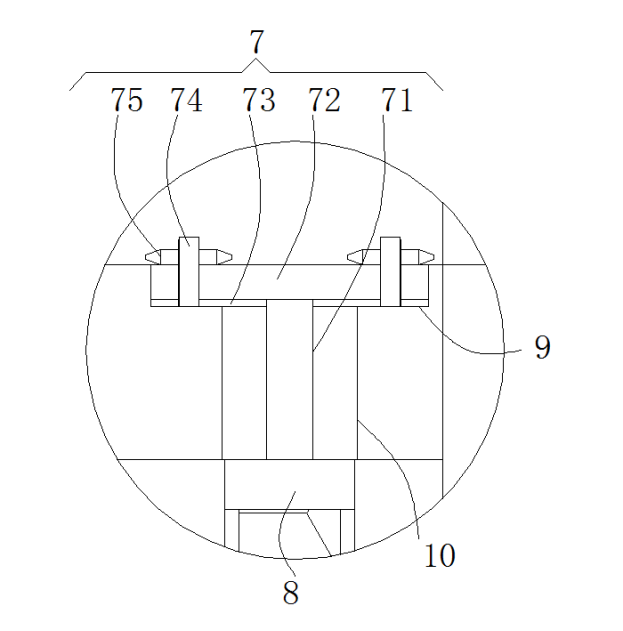 且滤网便于拆卸进行清理,拆卸时,通过手动将星型螺母75依次拧下,然后将密封板72向外侧拉动,通过连接板71将滤网8拉出,然后即可进行清理;